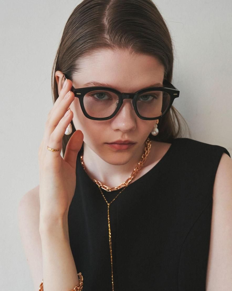 柔らかなカーブを描くボストンシェイプに、細身のテンプルとクリアなノーズパッドが絶妙にマッチした、知的さとモダンさが同居するフレーム。