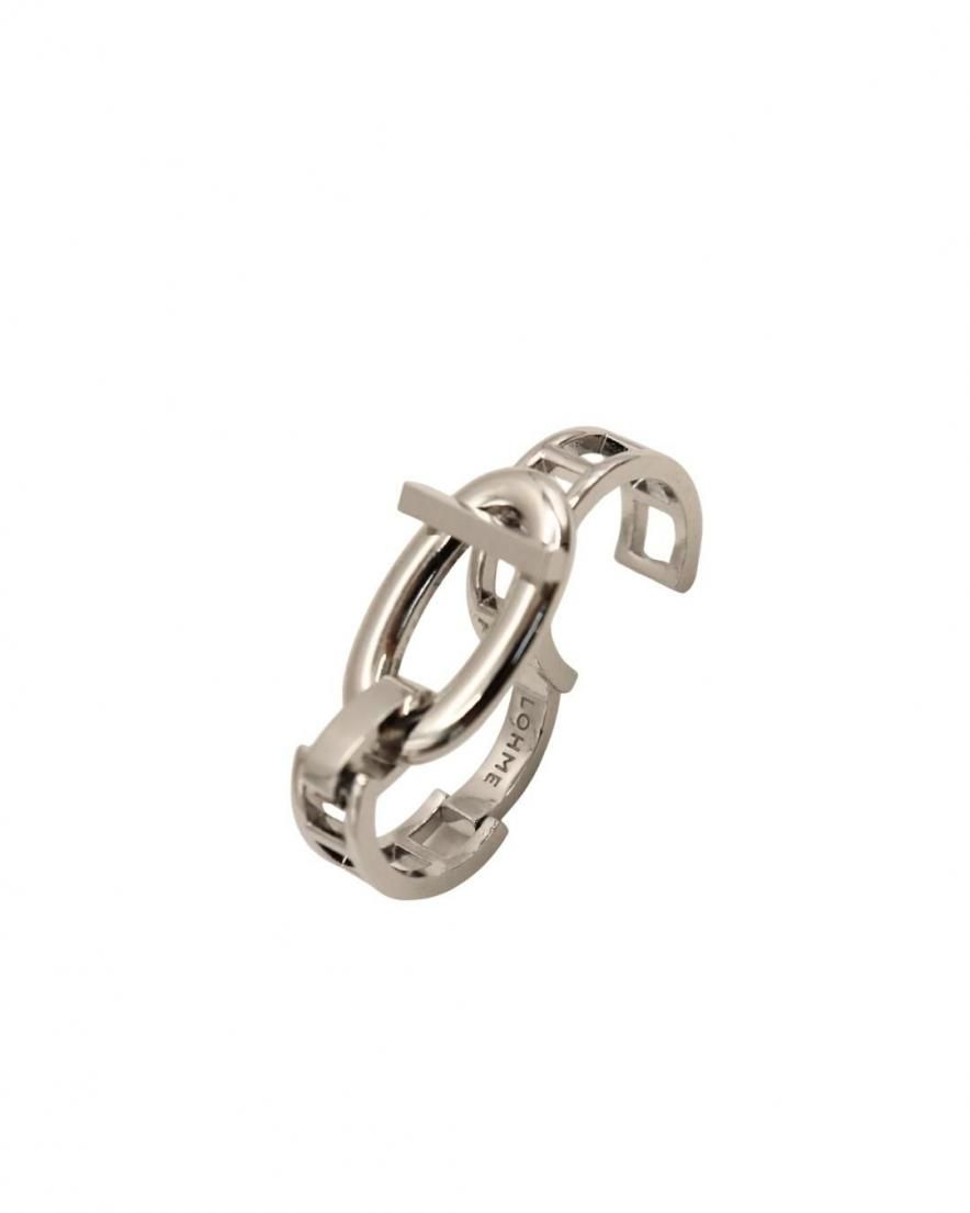 チェーン部分は細めに仕上げることで、存在感がありながらも洗練された印象に。人差し指と中指、中指と薬指など、着け方によって表情が変わります。従来の枠を超えた、モードな指元を演出するリング。